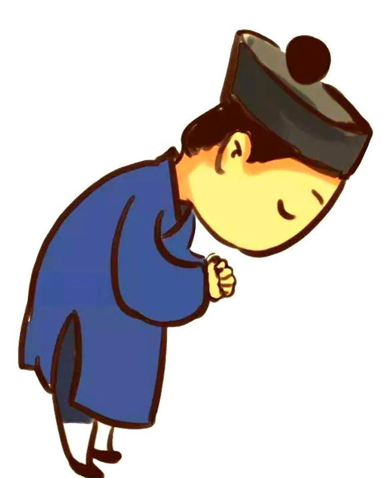 行揖礼时,一面躬身一面将双手在腹前合抱,自下而上至鼻前,向人致意。由于这个动作伴随着屈身,所以也被称为“打躬”。同时,因为身体弯曲成月牙状,所以揖礼又被称为“圆揖”。
